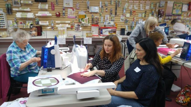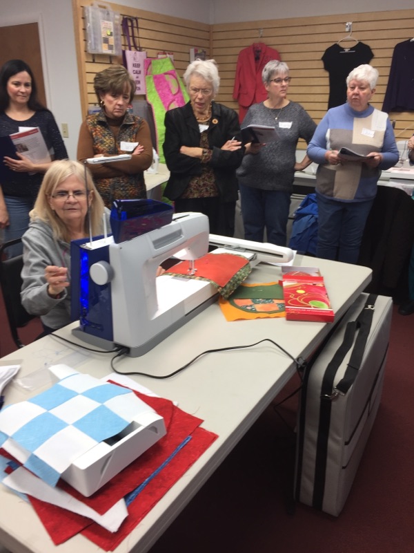 On Saturday, Luke’s Kentucky Clubhouse hosted another Epic Owner’s Class! Our educator Connie helped us start the spring off with a new table runner. We spent the day learning our machines and making new friends. For lunch, we had baked chicken, macaroni salad and coleslaw. The Viking EPIC’s generous throat space and intuitive touch screen interface allowed us to easily piece together this table runner and pick out the right stitches for the job!