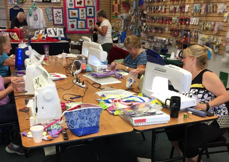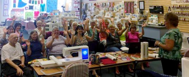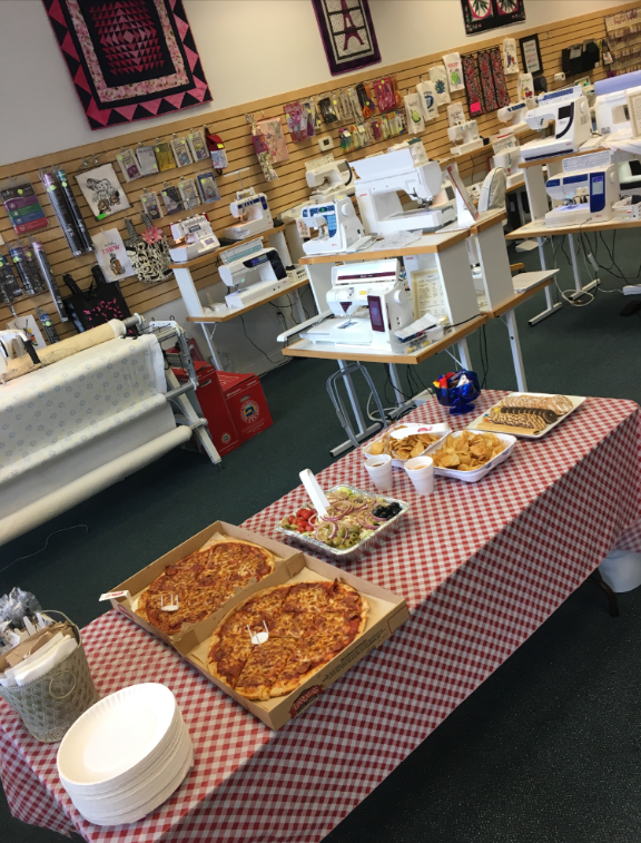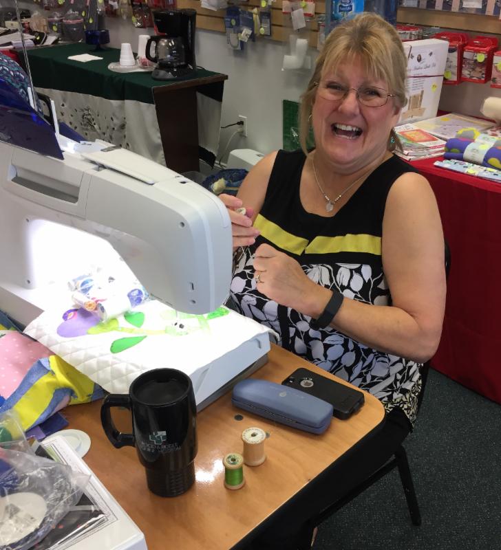 It was the last Block of the month at Tri County! We’ve spent a year learning new feet, specialty techniques, and making new friends. Our educator, Debbie C brought in her finished quilt top and it was FANTASTIC. We can’t wait to see how everyone’s quilts turn out – they’ve been coming together wonderfully. We’re having one more meeting for everyone to finish up and piece together their quilt next month.