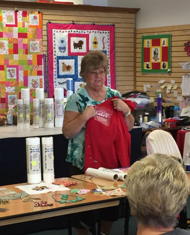 We had such a wonderful customer appreciation day on Friday at Luke’s Tri County! 27 VIP customers stopped by for lunch and a free gift. Laquitta showed us everything we could do with the Aqua Magic Stabilizer. She had so much fun showing us how to make free standing lace, 3D flowers, in the hoop quilting and much more! Her enthusiasm sure was contagious.